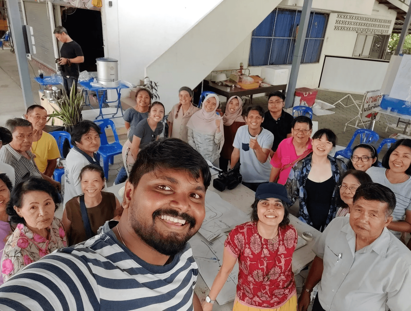 A resource library was used for participants to share books related to flood management, art, design, Thai history, and other relevant topics as well as sticky-notes, markers, scissors, tape, and other materials.