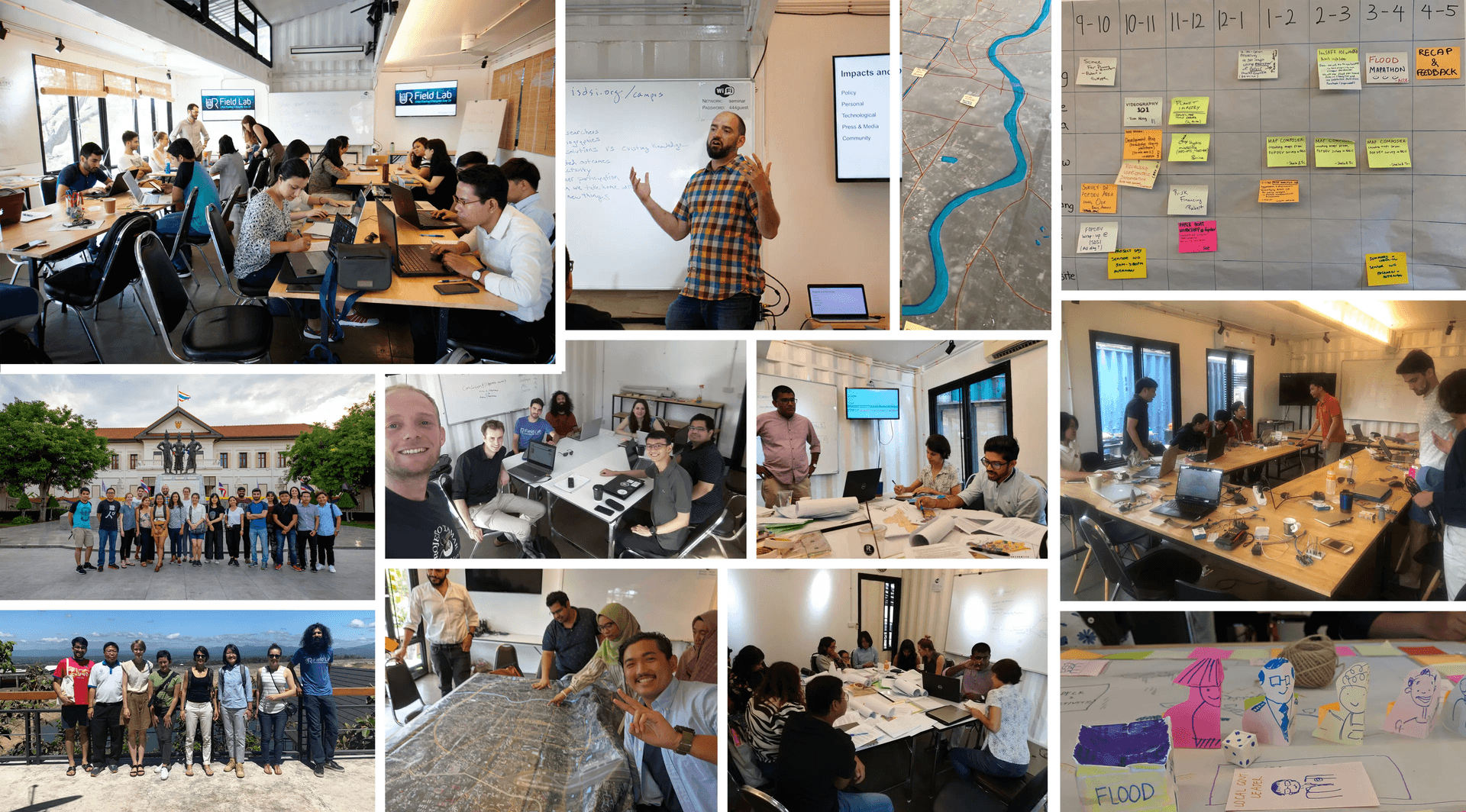 The flexibility and diversity of the the ISDSI space was critical for the success of the field lab. Rooms of multiple sizes, covered outdoor space, fully outdoor space, quite library-space and the cafe space enabled a huge diversity of activities, including large/small discussion groups, building and prototyping, large-audience presentations, quiet individual writing, collaborative mapping, testing sensing equipment etc. In addition, we partnered with Weave Artisan Society, who made available a separate space to build and exhibit artwork produced through the field lab.