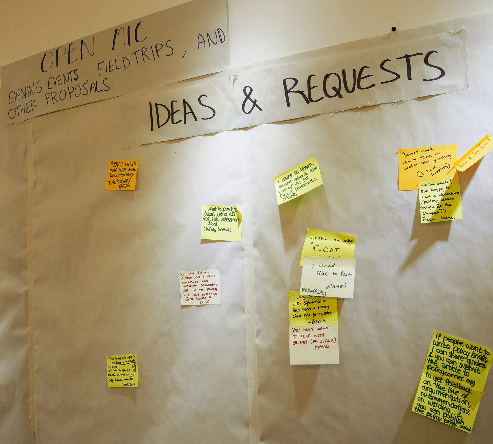 Another board was created for people to post sticky notes with calls for project assistance, field trip ideas, or other requests and suggestions.
